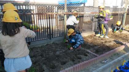 2年前に地域とのふれあい活動にて作った道路に面した花壇
