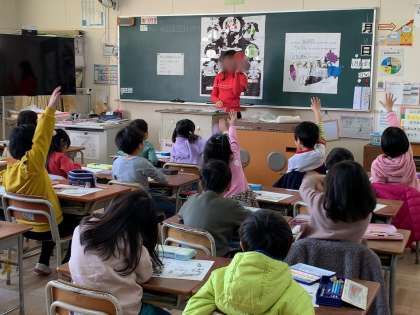 9日の給食献立をもとにしながら野菜のはたらきについてみんなで楽しく学びました。