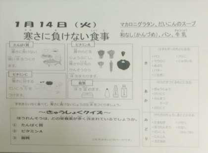 1月14日(火)の給食