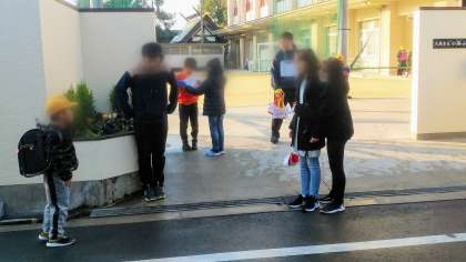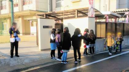 代表委員会の児童中心に朝のあいさつ運動を行っています。