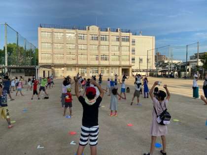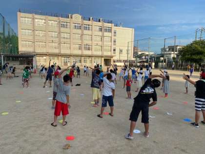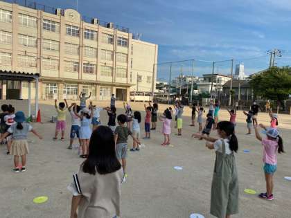 今年度は全日晴れ、1日も中止になることなく、行うことができました。特に今朝は、昨夕の雨のおかげかとても涼しかったので、みんなで気持ちよく体操できましたね。この調子で明日からも早寝早起きを続けてもらえたら、と思います。