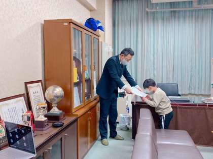 子どもたちは教室にいて、オンライン(Teams)上での式に参加しました。