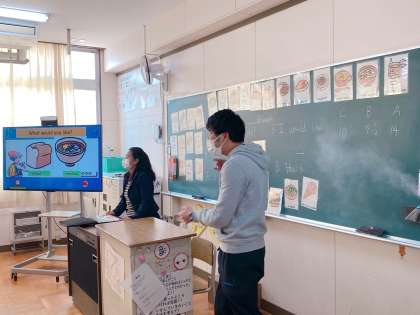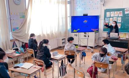 C-NETの先生と担任の先生と一緒に、英語を学習しているところです。
