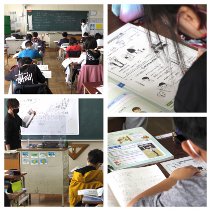 4年生の社会科では、都道府県の学習をしています。難しい漢字もたくさん出てきますが、子どもたちは調べながら白地図を埋めていました。