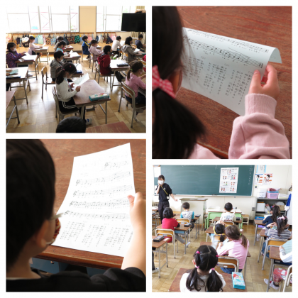 1年生は、校歌を覚える学習をしていました。校歌には、その学校の伝統や特徴が散りばめられています。歴史のある学校、お城やお山の見える学校と歌われています。さすがにビルが立ち並ぶ今の時代には大阪城は見えないかと思いましたが、よく見ると遠くに天守閣が見えました。校歌が作られた時代には、大阪城も生駒山もとてもよく見えていたのでしょうね。