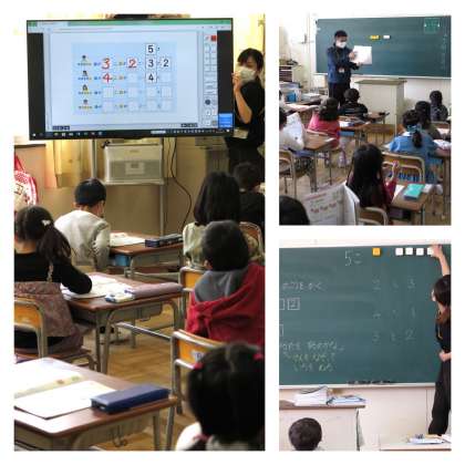 1年生は、数字の「5」について学習しました。5つのブロックを使って「5」という数字を数えましたが、「5」は「1と4」や「2と3」などに分けられることを確かめていました。「5」という数字がどのように分解できるかを学ぶことは、子どもたちの数に対する概念を定着させるとともに、その後の「たし算」の学習をスムーズに進めることにもつながります。