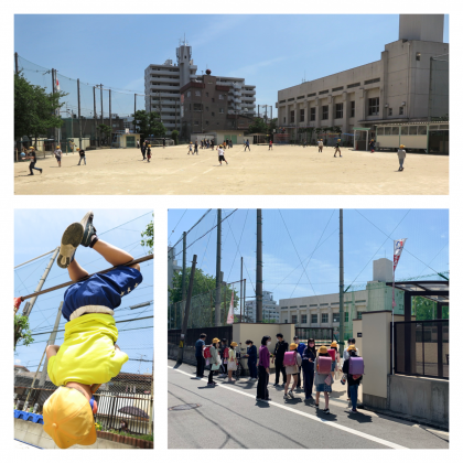 休み時間も元気いっぱい。今日は、いつものボール遊びやおにごっこに加え、鉄棒で遊ぶ子が何人かいました。