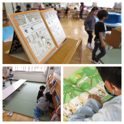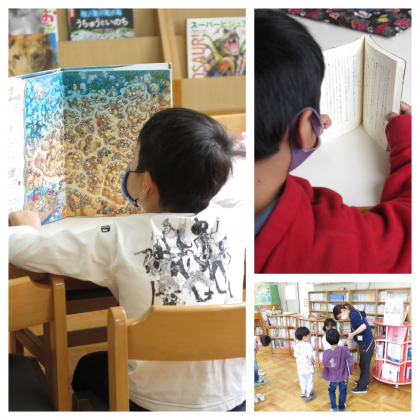 1年生は、西校舎にある図書館に行きました。興味のある本を探して、熱心に読んでいました。本好きな子がたくさんいて、中には文字がいっぱいの本を読んでいる子もいました。子どもたちに人気の本ではありますが、1年生でこのような本が読めることにビックリ!