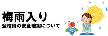 これからしばらく雨が続く予報が出ています。子どもたちの登校時間も分散していますので、以上2点のお声がけをお願いします。