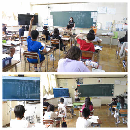 6年生は、国語の時間に説明文「イースター島にはなぜ森林がないのか」を学習しています。小段落は、最初が一文字下がっているので見てすぐにわかりますが、大きな段落がどこで分かれるかはなかなか難しいもの。「まず」、「次に」といった言葉に注目させながら、その後に書かれている内容がどのような内容かを考え、前の段落に続くか話が変わるかを考える材料にしています。