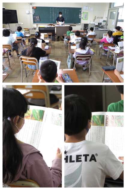 3年生は、国語の時間に【自然のかくし絵】という単元を学習しています。教科書には段落分けをして番号をふっていますが、各段落には「筆者の考え」と「そう考える理由や事例」が書かれたところがあり、段落相互の関係に着目させる「ねらい」があります。
