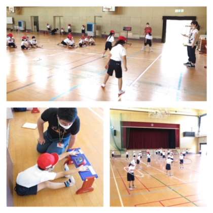 1年生もスポーツテストに取り組んでいます。今日は体育の時間に、反復横跳びや長座体前屈に取り組みました。