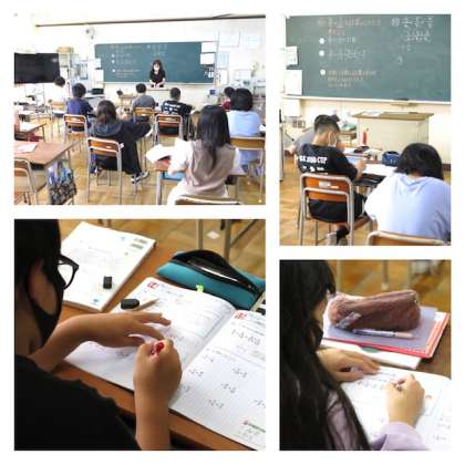 中学校数学の基礎となる大切な学習、6年生の子どもたちは、学習の成果を丸つけをしながら確かめていました。