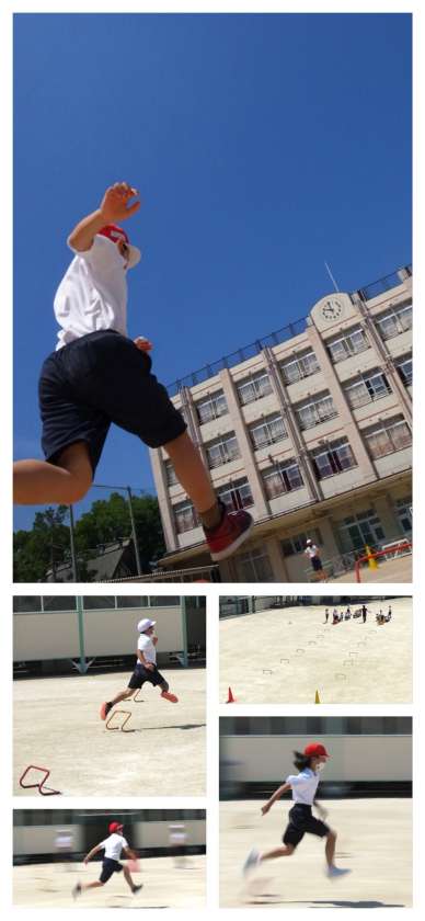 昨日の2年生に続き、今日は4年生がミニハードル走に取り組みます。日差しは厳しいものの風は爽やかで、澄み切った青空が気持ち良いです。