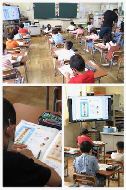 1年生は、算数の時間に「数え方」の学習をしています。1から10まで数えるような学習は終え、今は並んでいる絵の中から「りんごは上から4番目にある」といった表し方を学習しています。