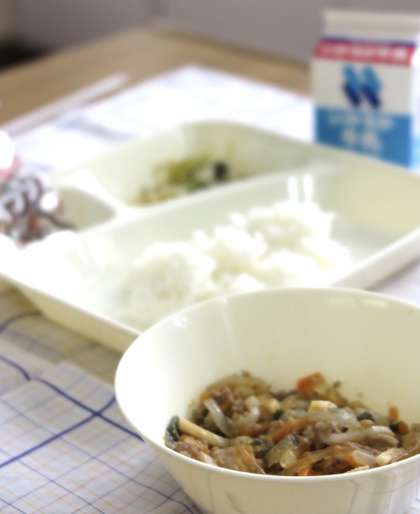 今日の給食は中華風の味付けです。ご飯によく合う献立です。