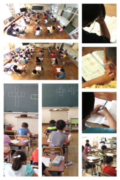 1年生は、国語の時間に「しりとり」を使った学習をしました。空いているマス目に文字を入れて、しりとりになるようにします。