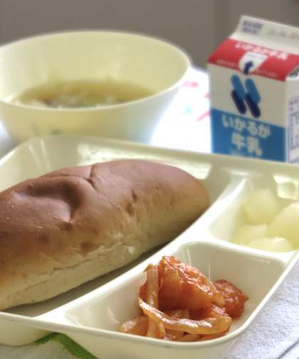 昨日は和食でしたが、今日は中華風の献立です。えびのチリソースは、辛いものが苦手な児童も美味しく食べられるほど良い味付けです。味付けはケチャップを主にしながらも、ショウガ・ニンニク・トウバンジャン・しょうゆなどが、味に深みを与えています。