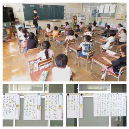 1年2組が国語の学習をしています。「どうやって みを まもるのかな」という単元で、【いろいろな動物が自分の身を守るためにどのような工夫をしているか】を読み取ります。