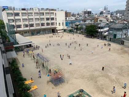 今週は雨の予報でしたが、先週の予報から一転、青空が広がりました。気温27度とやや高めですが、子どもたちは今日も元気いっぱいです。今日も運動場には、たくさんの子どもたちが遊びに出てきています。