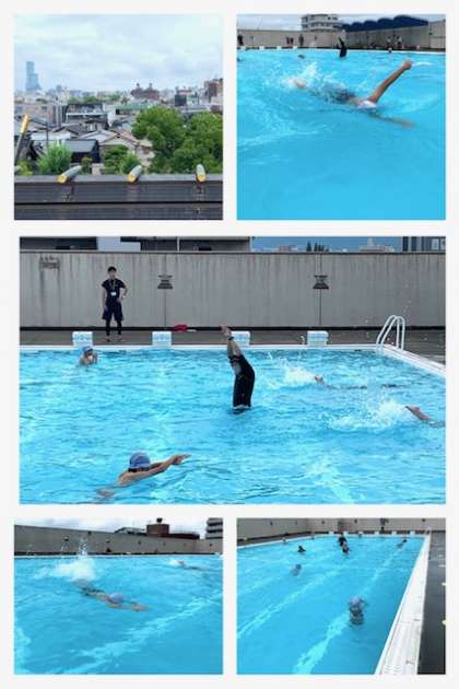 今週は雨の状態が目まぐるしく変化し、激しく降ったかと思えばしばらく降らないなど、雨雲レーダーから目が離せません。水泳指導にあたっては、雨雲レーダーと高所から遠方の建物がはっきり見えるかといった目視と合わせて、天候をチェックしています。