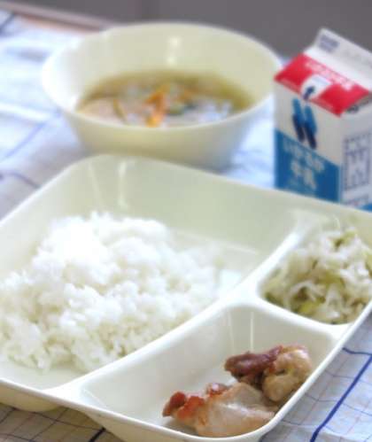 鶏肉のしょうゆマヨネーズは、ごはんととてもよく合う人気メニューです。切り干し大根は苦手な児童が多いのですが、ゆずの香りで、さっぱりと食べられるように工夫されています。