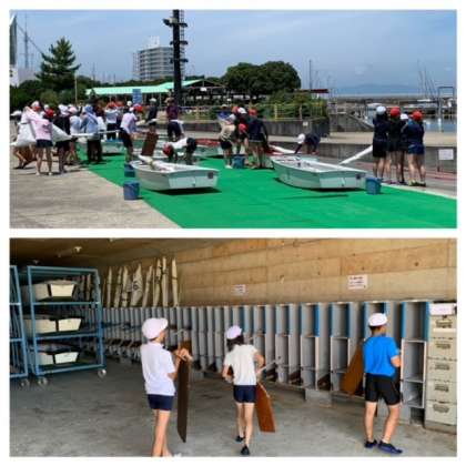 楽しい乗船の時間を終えて片付けです。組み立てた時の逆の手順でヨットを分解して洗って片付けていきます。