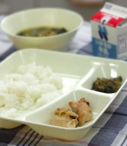 今日の献立は【焼き鳥・みそ汁・なすのそぼろいため・ごはん・牛乳】です。焼き鳥も、なすのそぼろいためも、子どもたちが大好きな人気メニューです。