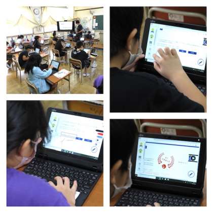 4年生が、タブレットドリルを使って学習していました。小路小学校は、タブレットドリルを先行導入しており、夏休みの課題として2〜6年生も取り組んできましたが、2学期より全市でnavimaというタブレットドリルが新たに導入され、今後は従来のタブレットドリルと併用します。