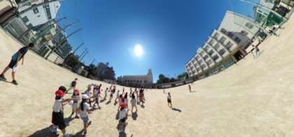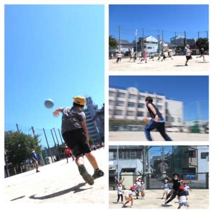 今日は快晴。気持ちの良い青空が広がりました。15分休みの運動場は、今日もたくさんの子どもたちでにぎわいます。おにごっこ、ドッジボール、鉄棒やジャングルジムなどの遊具遊び、子どもたちは思い思いに過ごします。