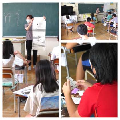 6年生は、家庭科の時間に「ナップサック作り」に取り組み始めました。今日は最初なので、内容物の確認や作り方の説明を聞いたりしました。