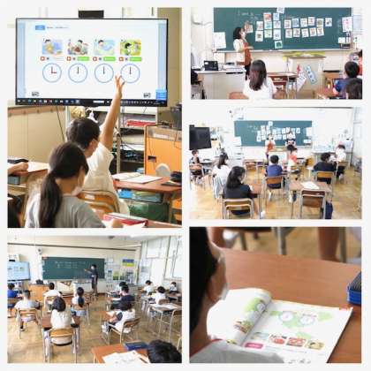 4年生は、英語の学習の時間に「時間の表し方」を学習しました。教室からは、とても元気の良い声が聞こえてきていましたが、小学生段階から英語学習をスタートすると、声に出して発音することに対する抵抗感がかなり低くなるという実感を持っています。