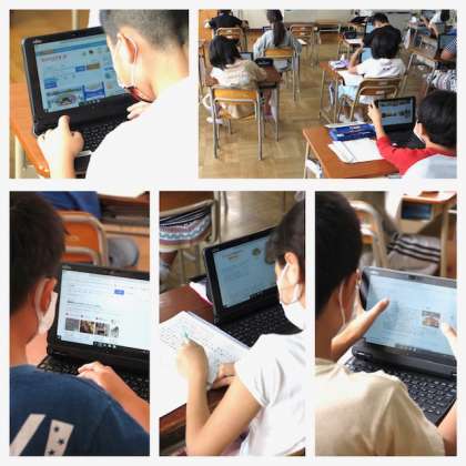 4年生は、タブレットを使って「和食」と「洋食」、それぞれの良さについて調べました。調べ学習では、調べたいキーワードを入力しなければなりませんが、とてもスムーズに入力することができています。調べ学習に必要なスキルは、何年高まっていると感じます。