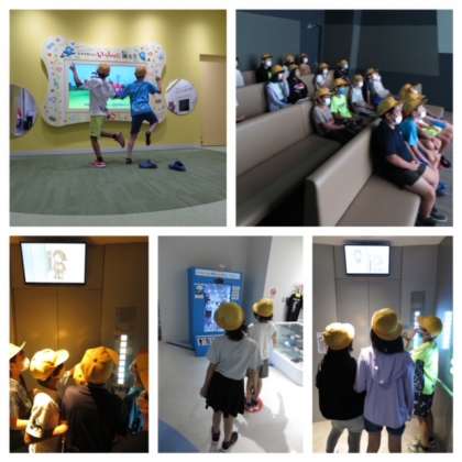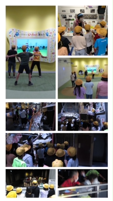 あべのタスカルで、地震発生時の対応について学びます。地震・津波の映像や、街並みを再現したコーナーでは、地震に対する恐怖感はなかなかのもので、中には少し不安になってしまう子もいました。
