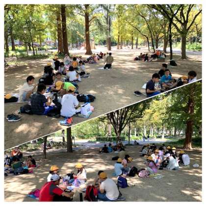 こうして屋外に出て食事をするのはとても久しぶりです。子どもたちも、久しぶりの校外活動を満喫しています。