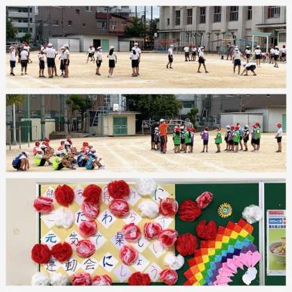 運動会に向けて、運動会練習は毎時間のように行われています。校内の掲示物も、運動会仕様になってきました。