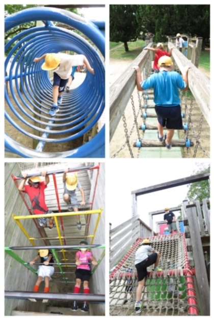 アスレチック遊具で遊ぶ子どもたち。かなり大きな遊具で、子どもたちも大満足だと思います。