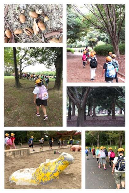 ドングリがたくさん落ちている場所を見つけたり、小高い丘がなぜできたのか疑問をもったり、子どもたちにとって校外に出ることがいかに貴重な体験なのかに気づかされます。
