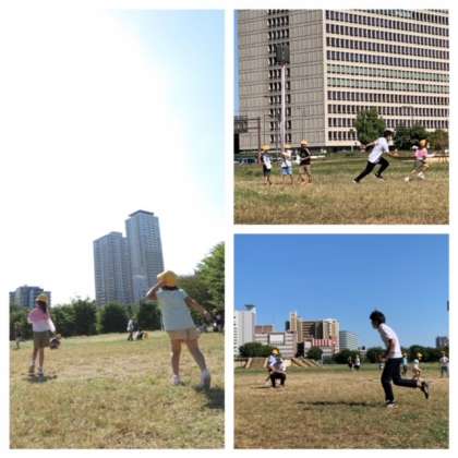 子どもたちのスタミナは凄いです。まだおにごっこを続けている子どもたちもいます。一緒に遊ぶ先生が、集団に追われて苦しそうです。