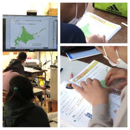 6年生は、北海道を三角形と捉えて、面積を概算で求める学習をしていました。既習事項を活かすための学習ですが、算数・数学は学んだことを実生活でどのように役立てるかを知っておくことも大切です。