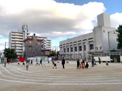 今日は運動場で、実際の大会に並んでの練習をしました。
