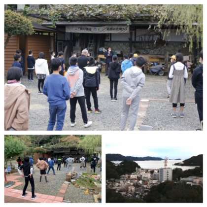 ここで朝のつどいと体操をしました。朝の空気が気持ち良いです。