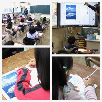 1年生は、国語の時間に「いろいろなふね」の単元を学習しています。この教材は、色々な役割を持つ船の紹介が同じような形式で続くので、子どもたちが文章の構成を掴みやすいという特徴があります。