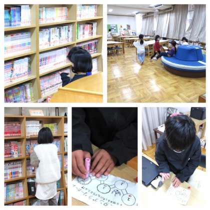 20分休みに図書委員会の児童が図書館開放をしてくれています。放送でお知らせすると、10人ぐらいの児童が図書館に集まりました。図書委員会の児童は、入口で消毒をしたり、換気のために窓を開けたり、とてもよく動いてくれます。低学年児童のカードにスタンプを押し、本の整理もしてくれました。