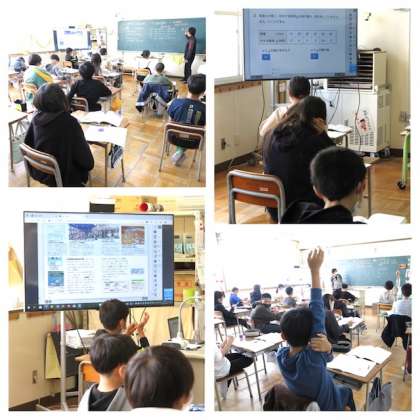社会も算数も、ICTを活用しています。デジタル教科書を電子黒板に投影する使い方は、本校ではもう日常的になっています。