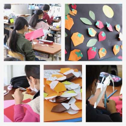 4年生は、先月の柿の作品に続いて、11月も秋の作品作りに取り組んでいます。子どもたちの机の上には、制作中の栗などがたくさんありました。完成がどのようになるかが楽しみです。