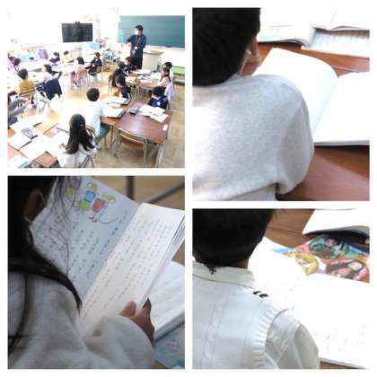 1年生は、国語の時間に「おとうとねずみ チロ」という物語について学習しています。最初の読みを経て、初めて読んだ時に感じた感想を発表し合いました。