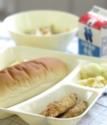 カリッと揚がったワカサギフライ、子どもたちに人気の献立です。