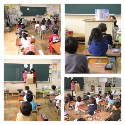 図書委員会の子どもたちが、今日は1年生の教室で紙芝居を読み聞かせました。