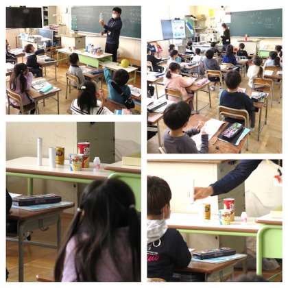 1年生は、算数の時間にいろいろな立体について学習しています。1年生なので、円柱、角柱、球といった言葉は出てきませんが、いろいろな箱やボールなどをその3種類に分類します。工作の材料用に持ってきていただいた箱が、ここでも大活躍しています。ありがとうございます。